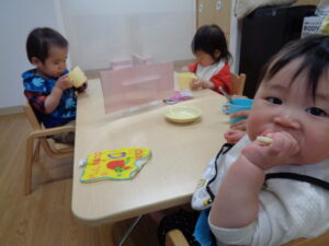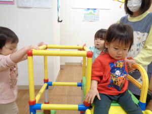 順番を待つのはまだ難しいけれど、なんども「じゅんばんね」と遊びながら、ちょっとだけ待つことを覚えてきています。