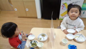 たくさん歩いておなかぺこぺこ😋お待ちかねの給食の時間です✨