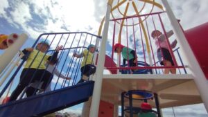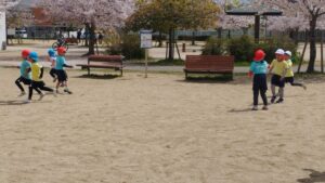 5歳児さんは、松縄町園と多肥下町園の5歳児さんと姉妹園交流で木太中央公園に行きました。
