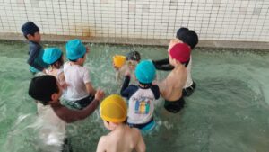 プールに入る前には、先生から入水の仕方を聞きました。「お腹から入らないと、みんなの大切が傷ついてしまうよ」と教えてもらいましたよ!