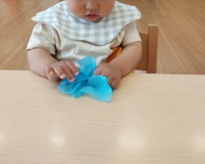 くしゃくしゃっと上手に丸めていたね。どんな製作に変身するか楽しみにしていてくださいね。