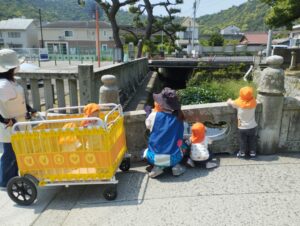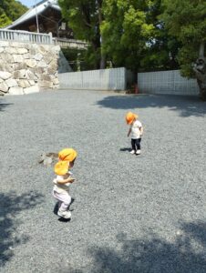 保育者の「よーいドン」の掛け声に笑顔で駆け回り、アリを発見すると、嬉しそうに教えてくれました。