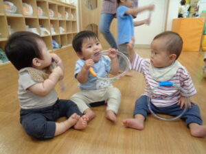 ピアノの音が聴こえると音がしている方を見るようになり、興味津々のいちご組さんでした。