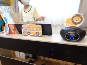 待っていると、お弁当バスの絵本が出てきました。