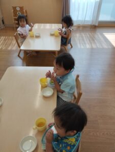 おやつを食べたら、今日はリトミックがあるよ🎵