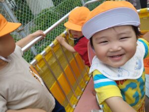 散歩車の中では、何度も振り向いては保育者を見てニコリッとする子も😄