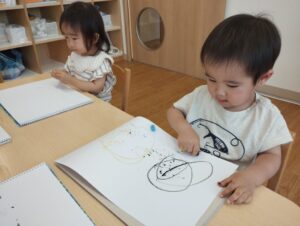 保育園に戻ってきてからはお絵描きをしたり指先遊びを楽しんだりしました。
