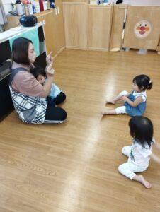 保育者が「薬指を動かすのは難しいかもしれないよ~」と言うと
