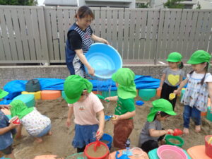 先生がお水をバシャーっと入れると「わぁー!」と大喜びでした(^^♪