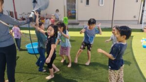 ペインティングが終わった後はみんなで水遊びをしました😆💦