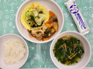 お友だちがよそってくれた給食はおいしかったね😋