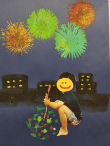 「いろんな色の花火みたよ!!」「大きくてきれいだったね✨」「またみたいな~」と一人ひとり感じたことを友だち同士で共有し合っていました。
