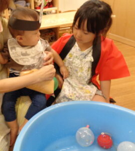 今日は8月生まれのお友だちのお誕生会と、夏祭りがありました。