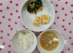 ご飯・ツナ卵焼き・ほうれん草の和え物・味噌汁