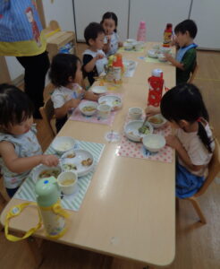 いつもと違う華やかな食卓に子どもたちは食事が進み完食しました。