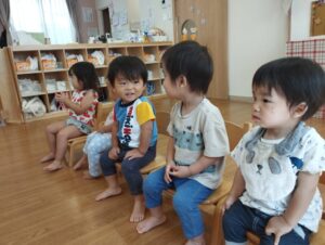 いつも元気いっぱいなひまわり組さん。涼しい風を感じながら今日も元気に登園してきました。