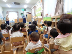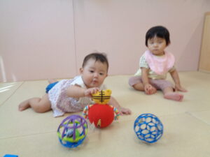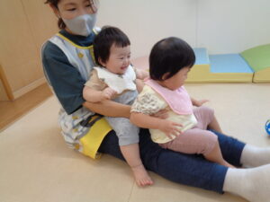いちご組さんは少しだけ参加して、お部屋に戻ってふれあい遊びをしました。