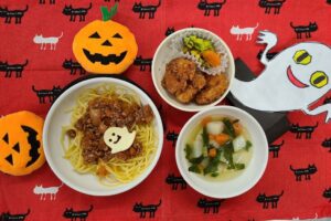 今日の給食は10月生まれのお友だちのリクエストメニュー&ハロウィン仕様でした👻