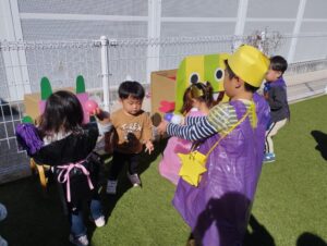 仮装した可愛い子どもたちが園庭に集まりましたよ👻