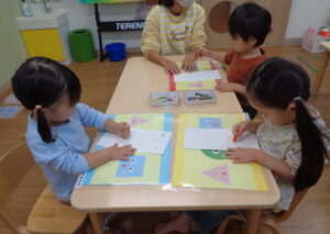 クレヨンで描いたり、筆を使ってぬったりすることがとても上手で、楽しんで取り組んでいました。