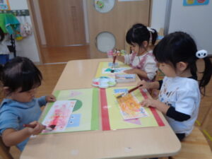 めろん組では、はじき絵に挑戦しました。