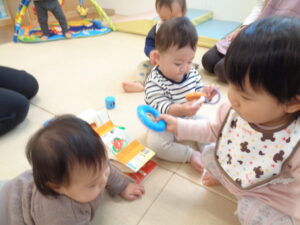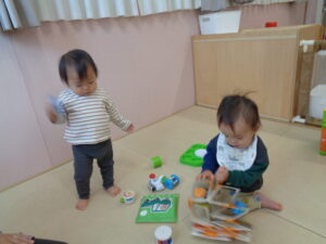 お部屋では、思い思いにあそびながら、お友だちの近くに行ったり、