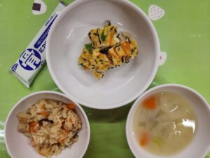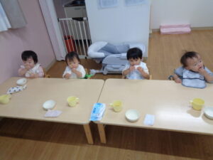 コップに両手を添えてお茶を飲むことも上手になってきていますよ😊