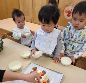 今日は、めろんぐみさん、そらぐみさんでクリスマスケーキを作りました(#^^#)