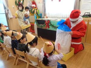 なんと、サンタさんが大きな袋を持って保育園に遊びに来てくれました!