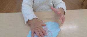 みんな、感触を楽しみながらペタペタとくっつけていましたよ。