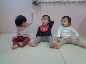 「朝の歌」は、手を叩いたり体を揺らしたりしながら、月齢の高い子は語尾をうたったり、小鳥が「ちっち」と言えたりできるようにもなってきました。
