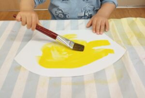 筆の使い方にも慣れてきて、優しく塗ろうとしたり横に筆を動かしたりして絵具塗りを楽しんでいましたよ。