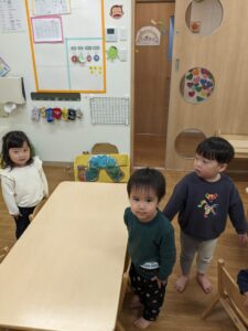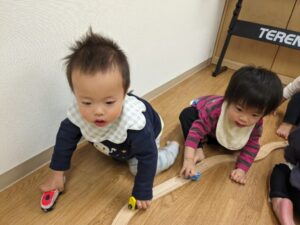 お友だちと玩具の取り合いになることもありますが、「かして」「いいよ」「どうぞ」「ありがとう」など子どもたちの中で少しずつやりとりができるように見守っていきたいと思います。
