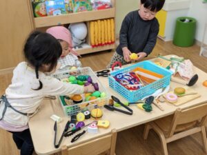 大きな声で 「お人形で遊ぶ!」 「おままごと!!」と自分たちがしたい事をしっかりと伝えてくれました👏