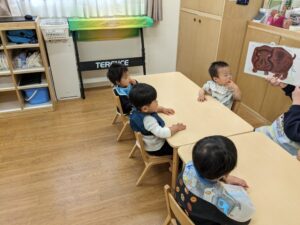 給食の前に絵本タイムです。