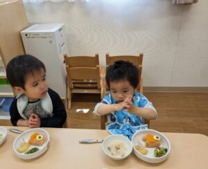 ちょっと時間があったので、絵本を読んでから、「いただきます👏」をしました!