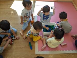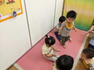 リトミックが終わったら、ひまわりぐみさんのお部屋で一緒に遊びました😊