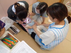 歯医者さんにニコニコスマイルを見せている子も、少し不安になっている子もいましたが、上手にゴロンと寝転んで診てもらうことができていましたよ🦷✨