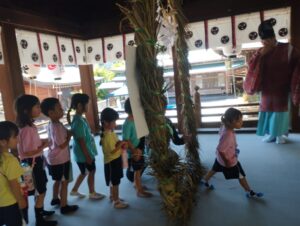 その後は神主さんにおはらいをしてもらい、輪の中をくぐりました。これは、心身を清めて災厄をはらい、無病息災を祈願するのだそうです。