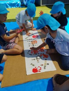 他のクラスの子どもたちも一緒にボディペインティングを楽しみました😄