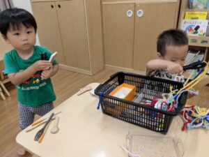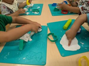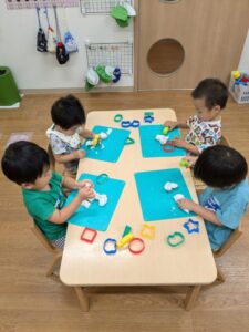 ねんどを棒で伸ばしたり、型抜きしてみたりと自分たちで考えながら取り組んでいましたよ😊