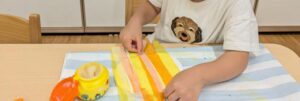 製作では、のりや絵の具など、いろいろな道具を使っています。