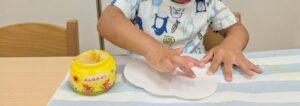 人差し指にのりをつけて画用紙にぬりぬり😶