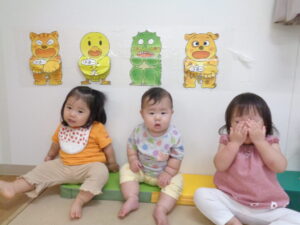 保育者が「いないいないばあ」をすると順番に披露してくれていました😊