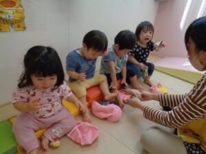 目の前に靴下に足を入れようとヶ頑張っていた子もいました🤭