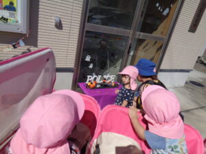 お散歩の途中でハロウィンの飾りを発見して、みんなで見ましたよ👻