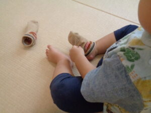 靴下を脱ぐとき自分で挑戦しているお友だちが!