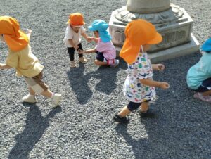 近くの神社に着くと、砂利で遊んだりどんぐりを探したりして楽しみました。