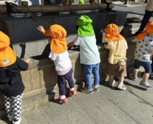 お兄さんお姉さんが手水をしているのを静かに見ていたひまわり組さん。