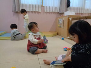 目が合うと笑って近づいてきてくれたり、名前を呼ばれると振り向いてくれたりするかわいいいちご組さん。